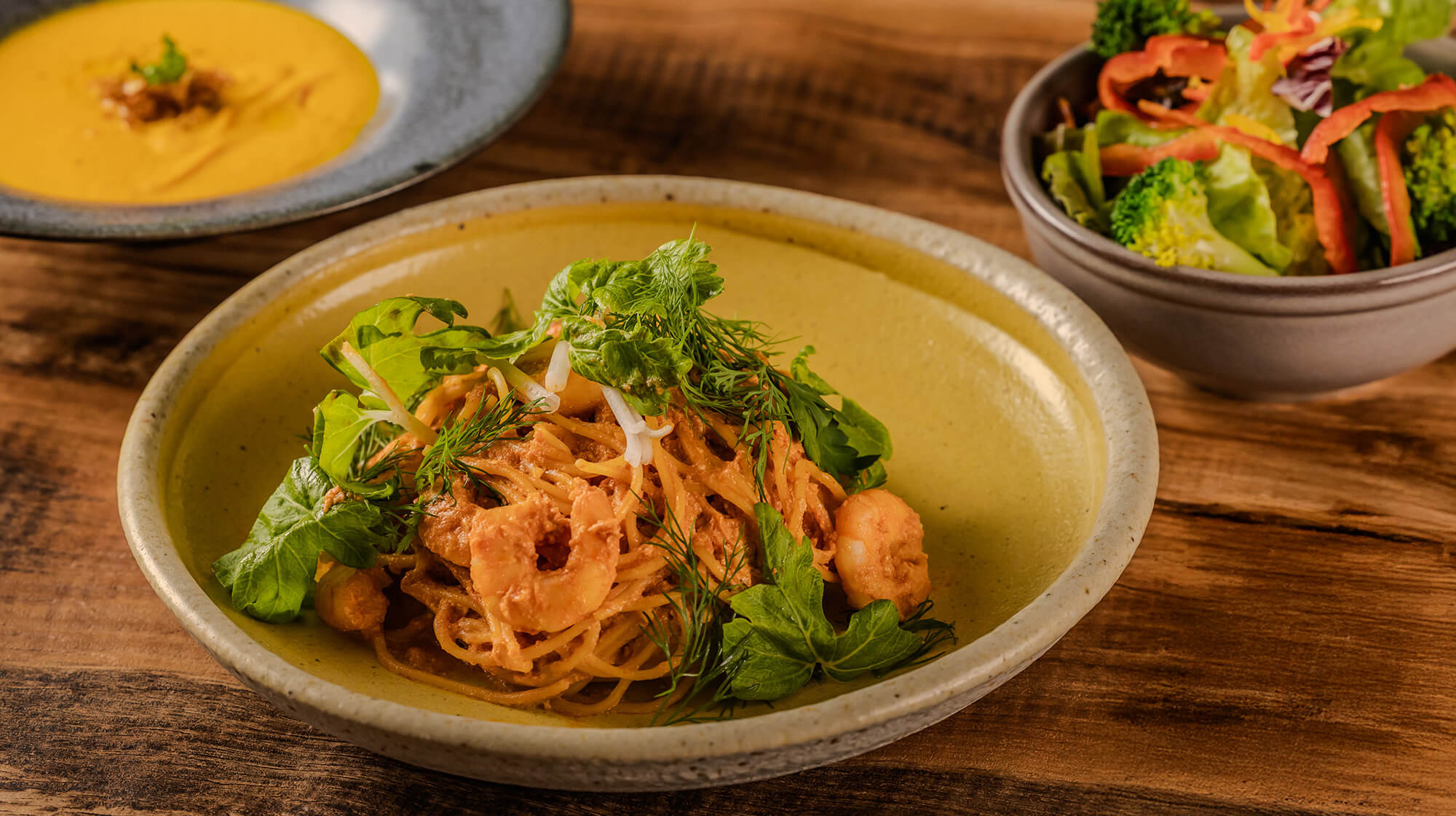 ・海老とリコッタチーズのビスク風パスタ